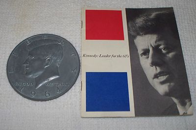 COMMEMORATIVE 1964 3" KENNEDY HALF DOLLAR WITH PREDIDENTIAL CAMPAIGN PAMPHLET
