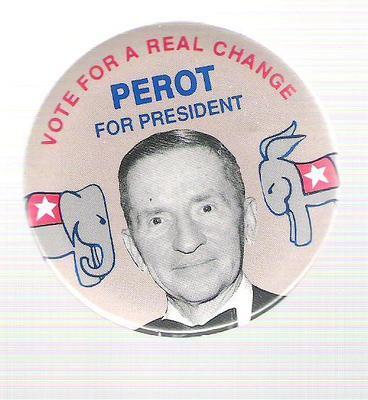 PEROT in 92 FOR PRESIDENT Campaign Button