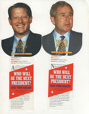 ORIGINAL 2000 BOOKMARKS WHO WILL BE THE NEXT PRESIDENT GEORGE BUSH OR AL GORE