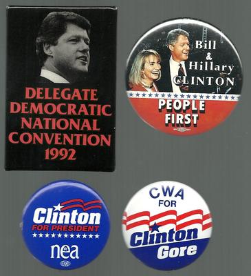 Lot of 4 different Bill Clinton presidential campaign buttons