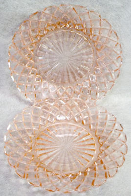 Title (ebay affiliate link): 2 PINK Depression Glass PLATES Hocking WAFFLE Waterford