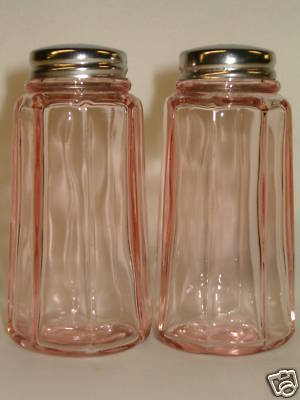 Title (ebay affiliate link): DEPRESSION PINK GLASS ART DECO SALT AND PEPPER SHAKERS