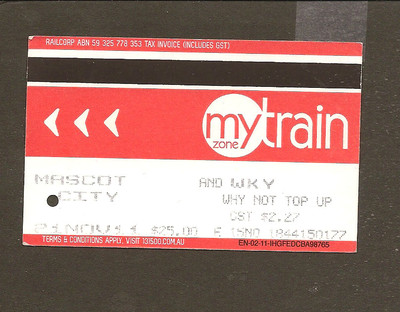 MASCOT UNDERGROUND - SYDNEY CITY 2011 #25 WEEKLY USED RAIL TICKET