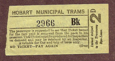 HOBART TRAMWAYS TRAM 1946 2d TRAM TICKET