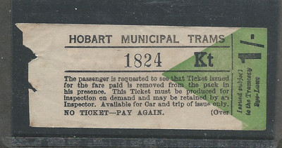 HOBART TRAMWAYS TRAM 1946 1/- TRAM TICKET