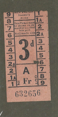 MELBOURNE TRAMWAYS 1952 3d PINK TRAM TICKET