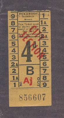 MELBOURNE TRAMWAYS 1952 4d YELLOW TRAM TICKET