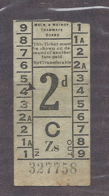 MELBOURNE TRAMWAYS 1952 2d GREEN TRAM TICKET