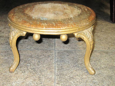 Title (ebay affiliate link): ANTIQUE WOOD CAST FOOT STOOL ROUND FOOTSTOOL UNIQUE
