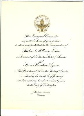 White House President Richard NIXON & VP Spiro AGNEW Inauguration Invitation