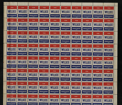 1940 WILLKIE FOR PRESIDENT SHEET 100 LABELS !! COMPLETE !! NJ REPUBLICAN SEALS !