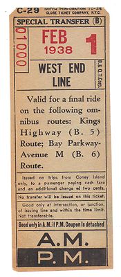 Title (ebay affiliate link): 1938 WEST END LINE BROOKLYN & QUEENS TRANSIT CORP BUS TRANSFER