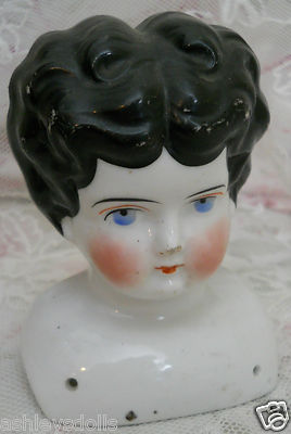 Title (ebay affiliate link): 4" Antique German China Doll Head, Molded Black Hair! #3