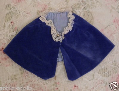 Title (ebay affiliate link): Blue Velvet Doll Cape w Pretty Lace for Antique French Fashion & China Dolls!