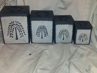 Title (ebay affiliate link): primitive decor~ wooden canisters ~ willow tree ~ farmhouse ~kitchen-home decor