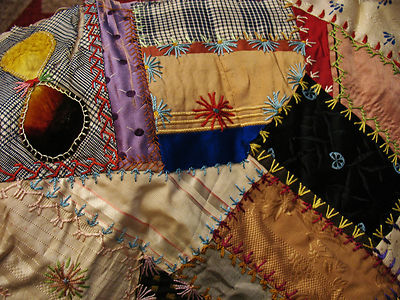 Title (ebay affiliate link): Large antique crazy quilt piece or block with embroidery moon flowers butterfly