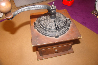Title (ebay affiliate link): Vintage Primitive Old Wood & Cast Iron Coffee Grinder Kitchen Utensil