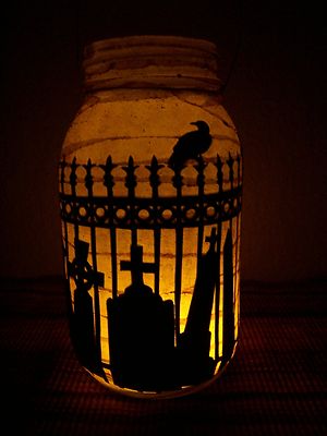 Title (ebay affiliate link): New Grungy Primitive Halloween Cemetary Lantern Candle Holder