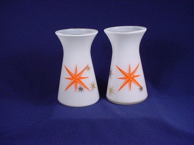 Title (ebay affiliate link): PR OF RETRO 50's MINI VASES MILK GLASS CRYSTAL OVERLAID-HAZEL ATLAS HOCKING