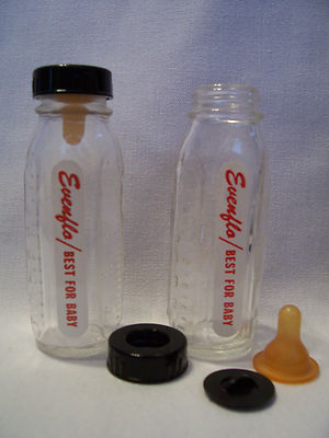 Title (ebay affiliate link): 2 Vintage 1950's Evenflo Mini Glass Baby Doll Bottles 3 3/4" Mint New !