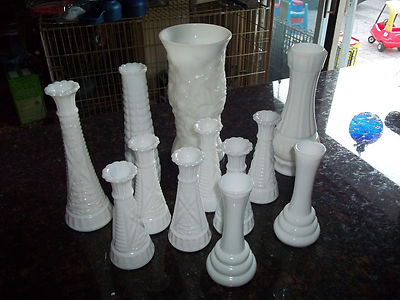 Title (ebay affiliate link): Lot of 12 Milk Glass Vase's Great for Wedding or shower Centerpieces
