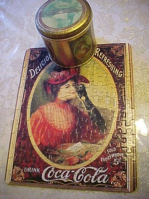 Title (ebay affiliate link): OLD COCA COLA VINTAGE FASHION LADY DRINK COKE ADVERTISING JIGSAW PUZZLE IN TIN
