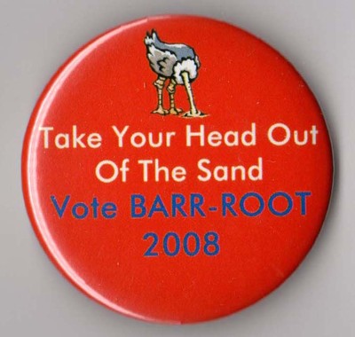Title (ebay affiliate link): Bob Barr campaign button pin Libertarian Party 2008 Ostrich