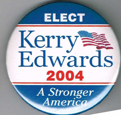 2004 ELECT JOHN KERRY - EDWARDS PIN, A STRONGER AMERICA BUTTON #1518