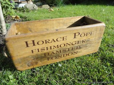 Title (ebay affiliate link): VINTAGE STYLE WOODEN FISHMONGER CRATE PRAWN BOX ROPE HANDLE LONDON SHELLFISH