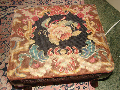 ANTIQUEQUEEN ANNE NEEDLEPOINT FOOT STOOL/OTTOMAN
