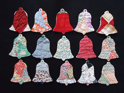 Title (ebay affiliate link): 15 PRIMITIVE ANTIQUE CUTTER QUILT CHRISTMAS BELLS - FOLK ART