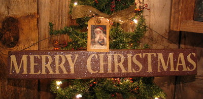 Title (ebay affiliate link): * MERRY CHRISTMAS Primitive Folk Art Sign Grungy Vintage Santa Tag By HSC