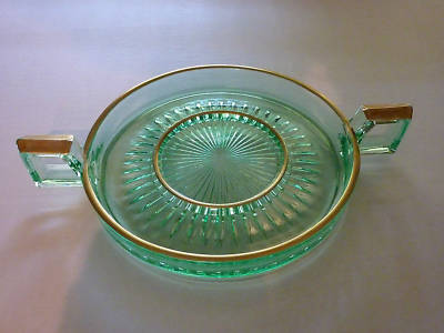 Title (ebay affiliate link): Vintage Green & Gold Depression Glass Tray W/ Handles