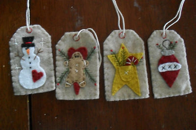 Title (ebay affiliate link): 4 ChRiStMaS PRiMiTiVe PeNnY RuG TaG OrNiEs(SnOwMaN, StAr, BuLb, GiNgErBrEaDmAn)