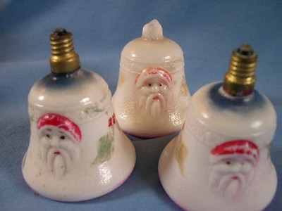 Title (ebay affiliate link): 3 VINTAGE CHRISTMAS MILK GLASS LIGHTS SANTA CLAUS FACE BELL SHAPED XMAS