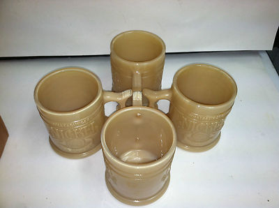 WHATABURGER Cream Milk Glass Coffee Mug Set (4) Cups Indian Buffalo Nickel