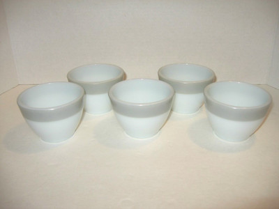 Title (ebay affiliate link): 5 Vintage Corning Milk Glass Soup Cups Restaurant Ware White/Gray Strip/ Band