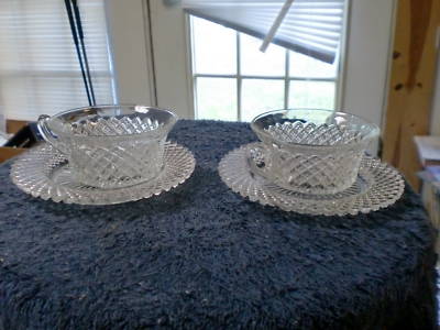 2 CLEAR MISS AMERICA CUPS AND SAUCERS