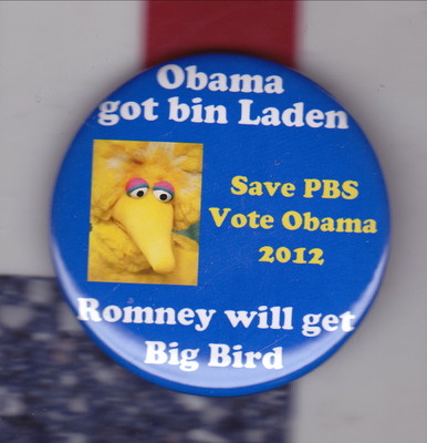 Title (ebay affiliate link): ANTI ROMNEY 2O12 POLITICAL BUTTON PRO PBS OSAMA OBAMA BIG BIRD VOTE OBAMA