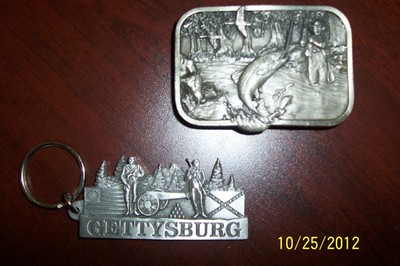 Title (ebay affiliate link): Vintage SISKIYOU Leather and Buckle Co. belt buckle & pewter Gettysburg keychain
