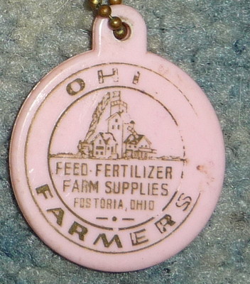 vintage Ohio Farmers feed Fertilizer farm supplies Fostoria Keychain Cooper tire