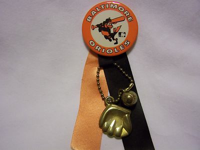 Title (ebay affiliate link): Vintage Baltimore ORIOLES 1960's Pin back Button w/glove/ball keychain