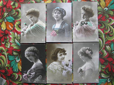 Title (ebay affiliate link): 6 x Antique 1910s Pretty Lady Portraits Paris Studio Color Photo Post Cards