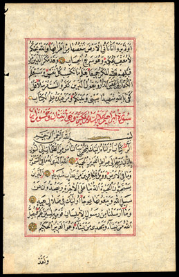 Title (ebay affiliate link): Illuminated Ottoman Koran Leaf Lot (3) Red Sura Heading Constantinople Ataturk