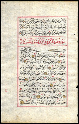 Title (ebay affiliate link): 1804 Illuminated Ottoman Koran Leaf Lot (3) Red Sura Heading Turkish Ataturk