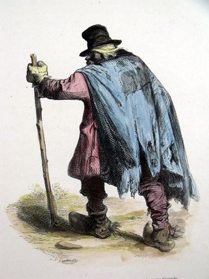 Title (ebay affiliate link): 1842 GRANDVILLE - WANDERING BEGGAR - Hand colored Engraving