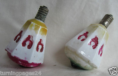 Title (ebay affiliate link): PAIR OF VINTAGE FIGURAL HANUKKAH CHANUKAH DREIDEL GLASS BULBS
