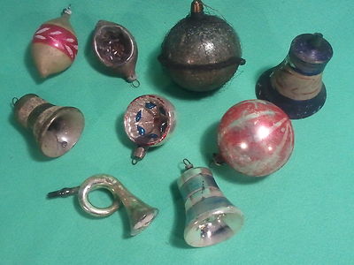 Title (ebay affiliate link): 9 Antique Mercury Glass Christmas Tree Ornaments Horn/Bell/Bulb/Indent/Wire