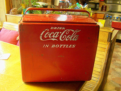 Title (ebay affiliate link): Vintage Red Coke Cola Cooler Unusual Latch Handles Cavalier Co. Tenn Estate Find