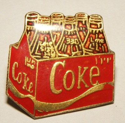 Title (ebay affiliate link): Vintage Enamel Coke Cola Bottles in a Crate Pin Badge coca cola